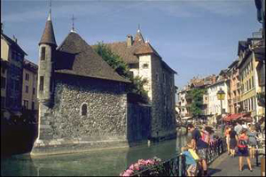 It is a beautiful day, green everywhere and the sun shines. We haven’t seen the snowy scenery yet. Just before we start ascending, we stop at our favourite town, Annecy. It is the last town situated on the side of a lake, looking as if it has melted among the surrounding mountains. Then we eat lunch in a restaurant in the old town and continue driving.